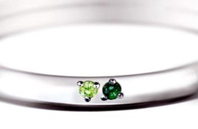 每一隻戒指內圈都鑲有淡黃色的橄欖石(寶石之詞:幸福與愛的證明)和綠色的石榴石(寶石之詞:真愛與友誼),象徵夫妻幸福,寓意仙女通過祈禱將祝福嵌入戒指中。同時,這兩顆寶石亦可改為誕生石,變成專屬倆人的幸福密碼。