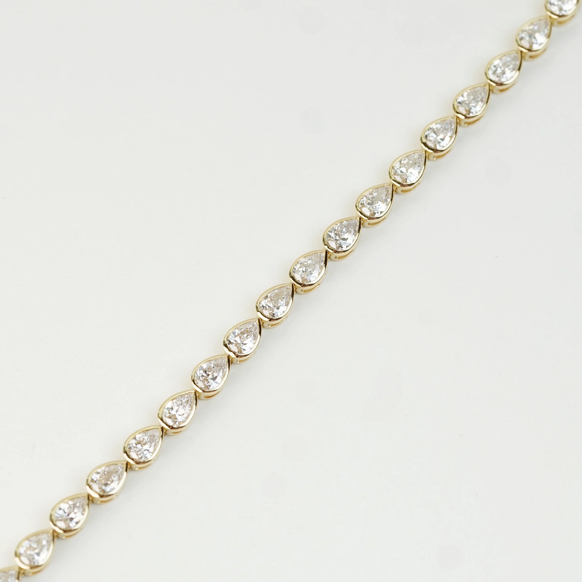 [In Stock] 5.66ct Pear-Cut Lab-Grown Diamond Bezel Set Tennis Bracelet in 18K Gold | D–F / VVS–VS | B25340PR