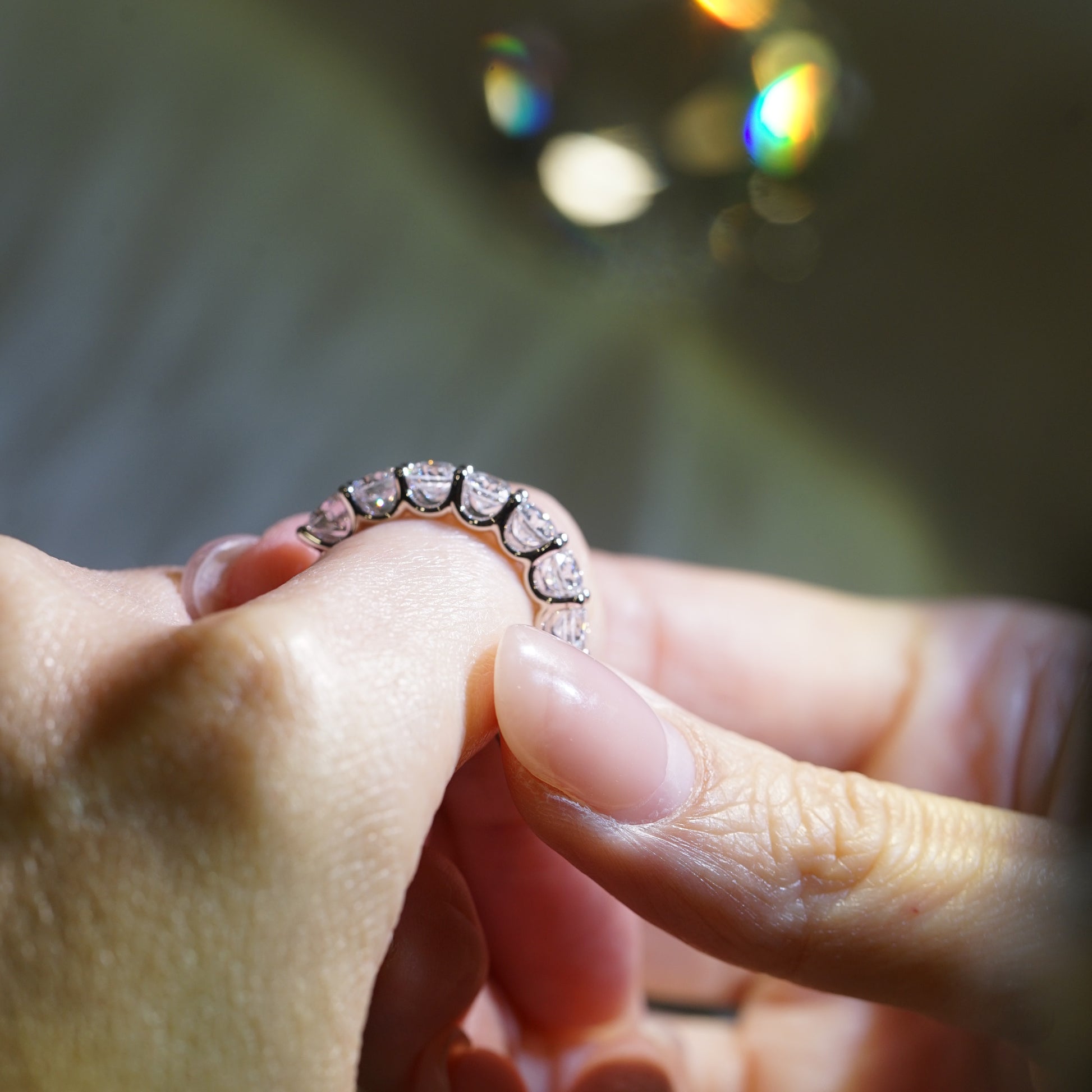 現貨 18K金 1.72ct (每粒0.25ct) 培育圓鑽U形爪線戒