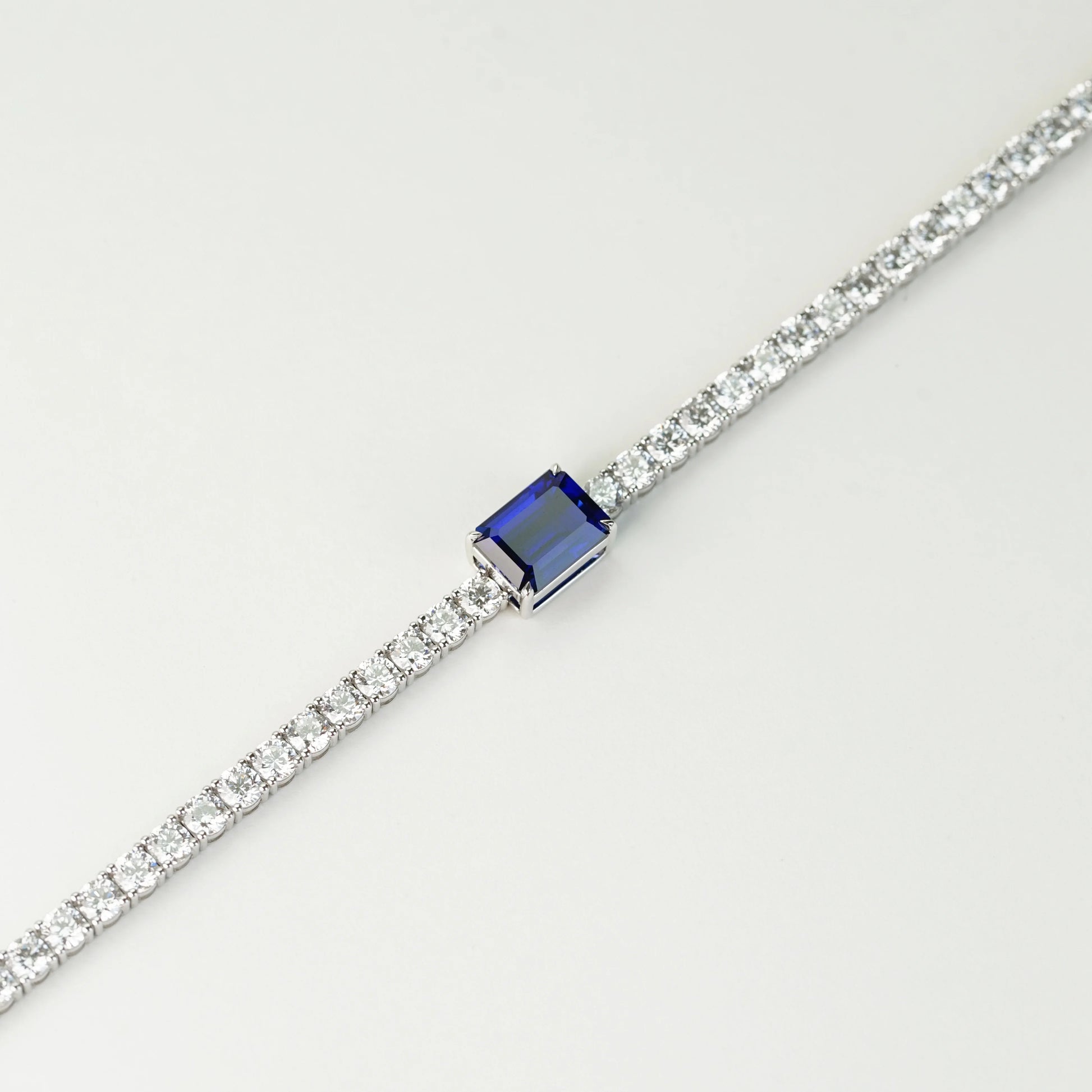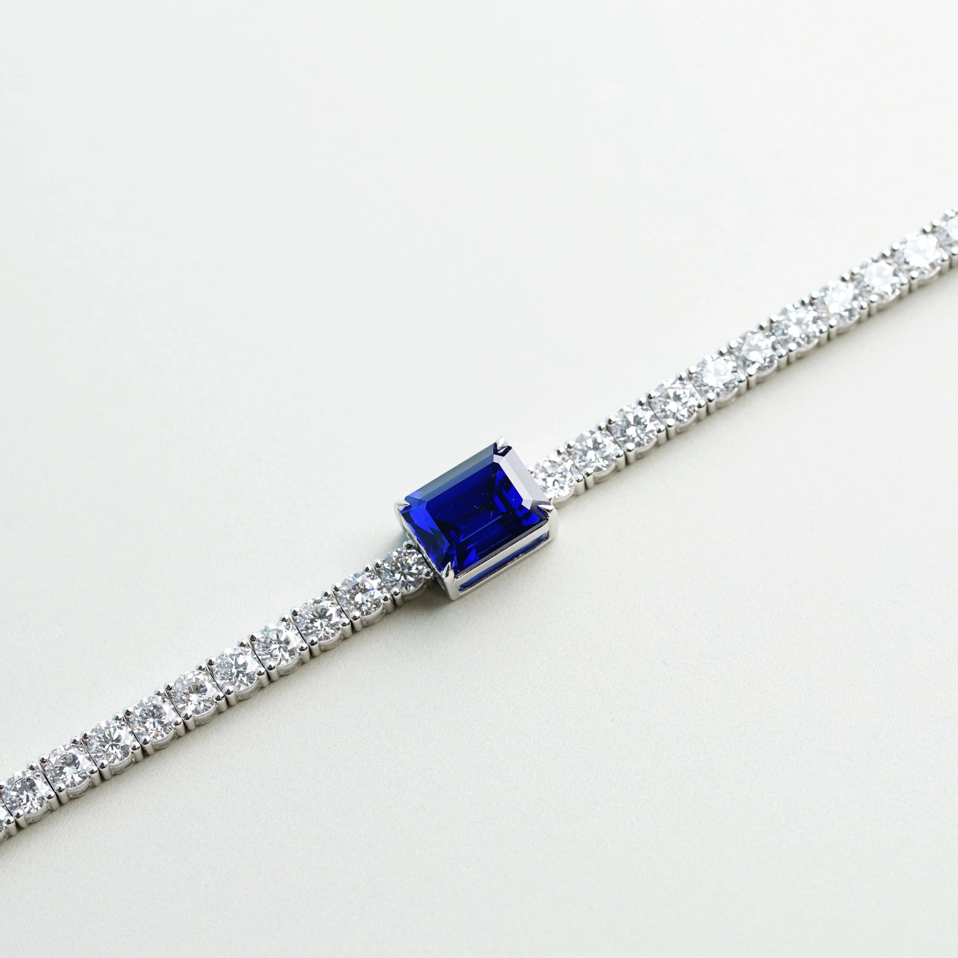 *參考圖片為主石5.41ct 培育藍寶石 配 每顆 0.20ct 培育鑽石 16.5cm長 18K白金手鏈*