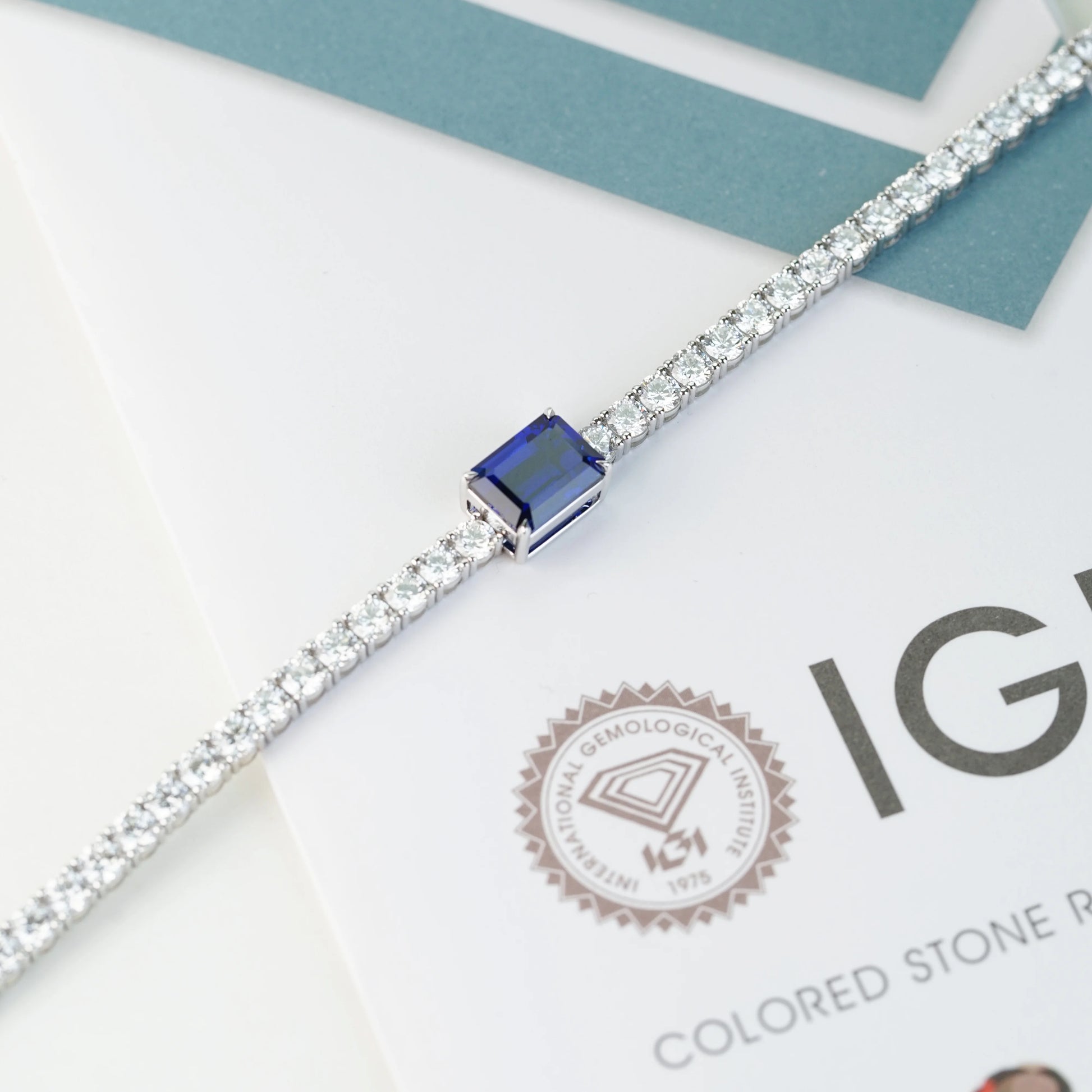 祖母綠形培育寶石手鏈(附 IGI 證書)|配培育鑽石網球手鏈