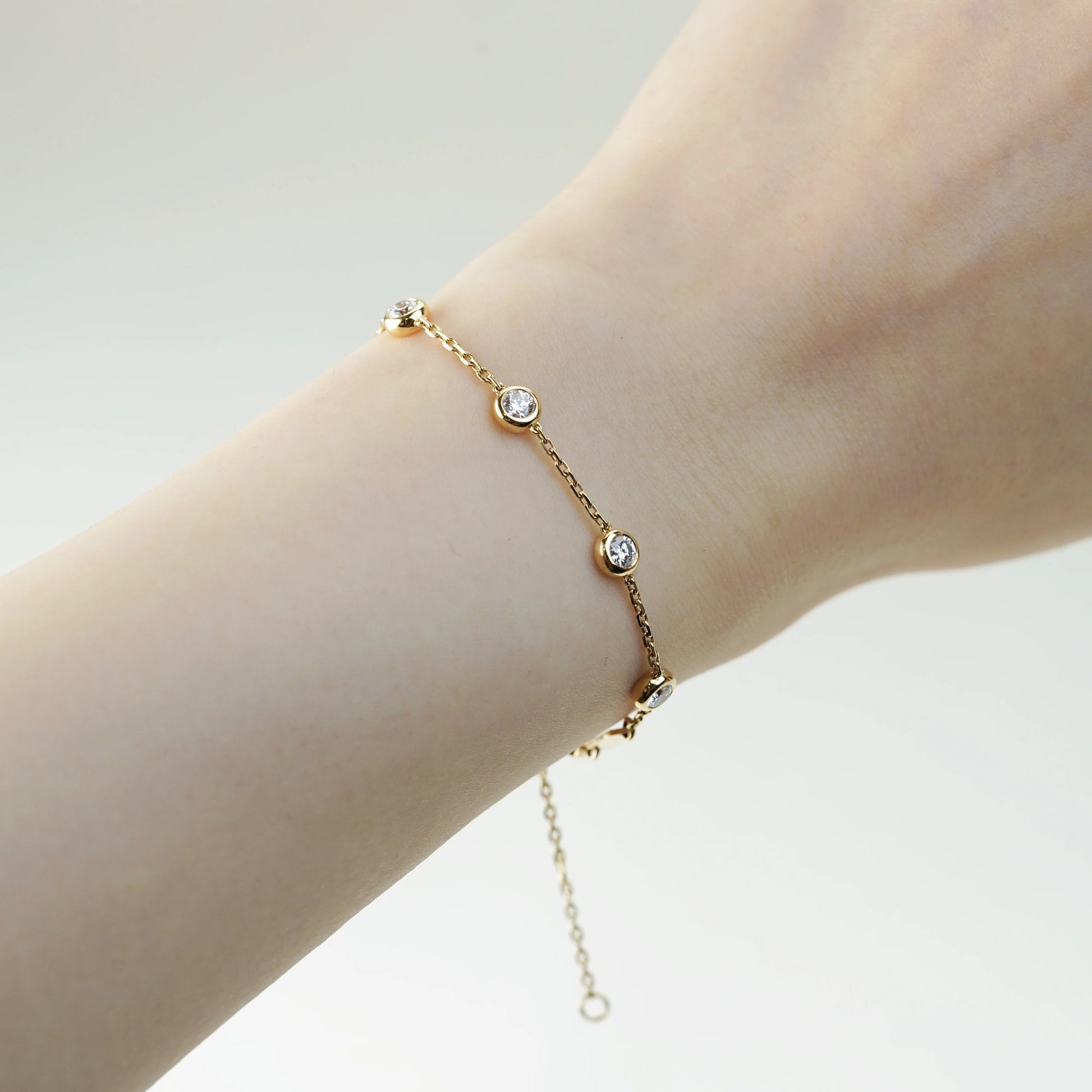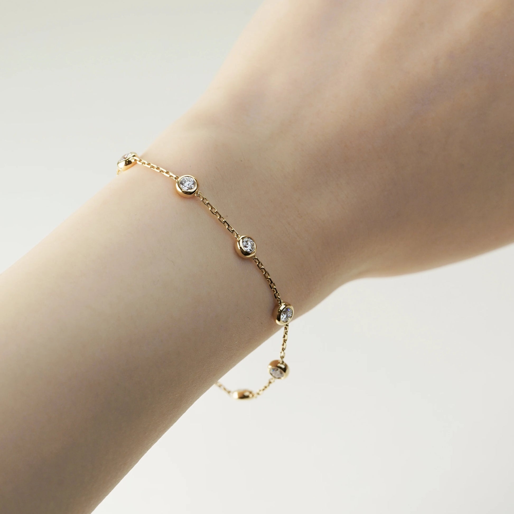 18K金圓形培育鑽石泡泡手鏈 | D-F / VVS-VS