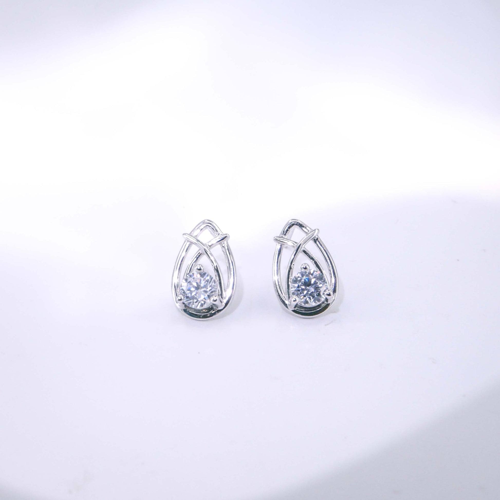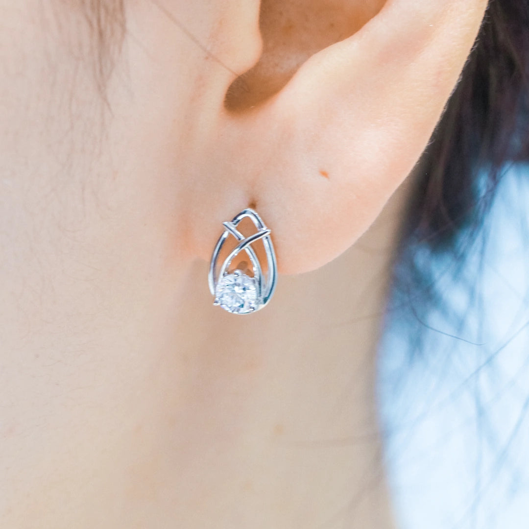 18K金圓形培育鑽石耳環 | D-E VVS Ideal Ex Ex | 立體交錯框架設計| <總數 0.60ct - 1.40ct+>
