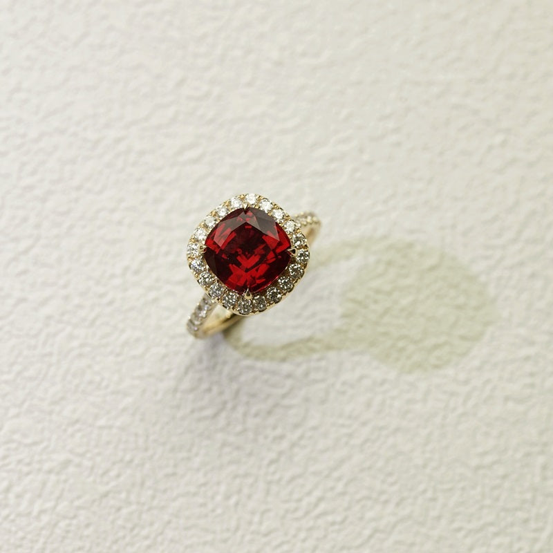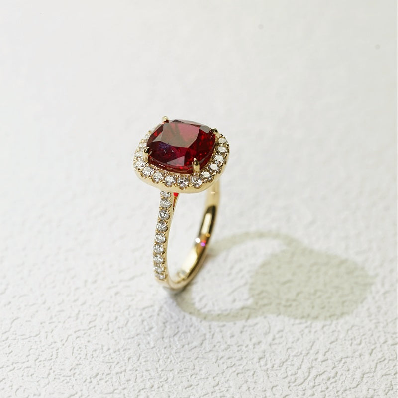 4.20cts墊形培育紅寶石戒指(18K黃金) 現貨