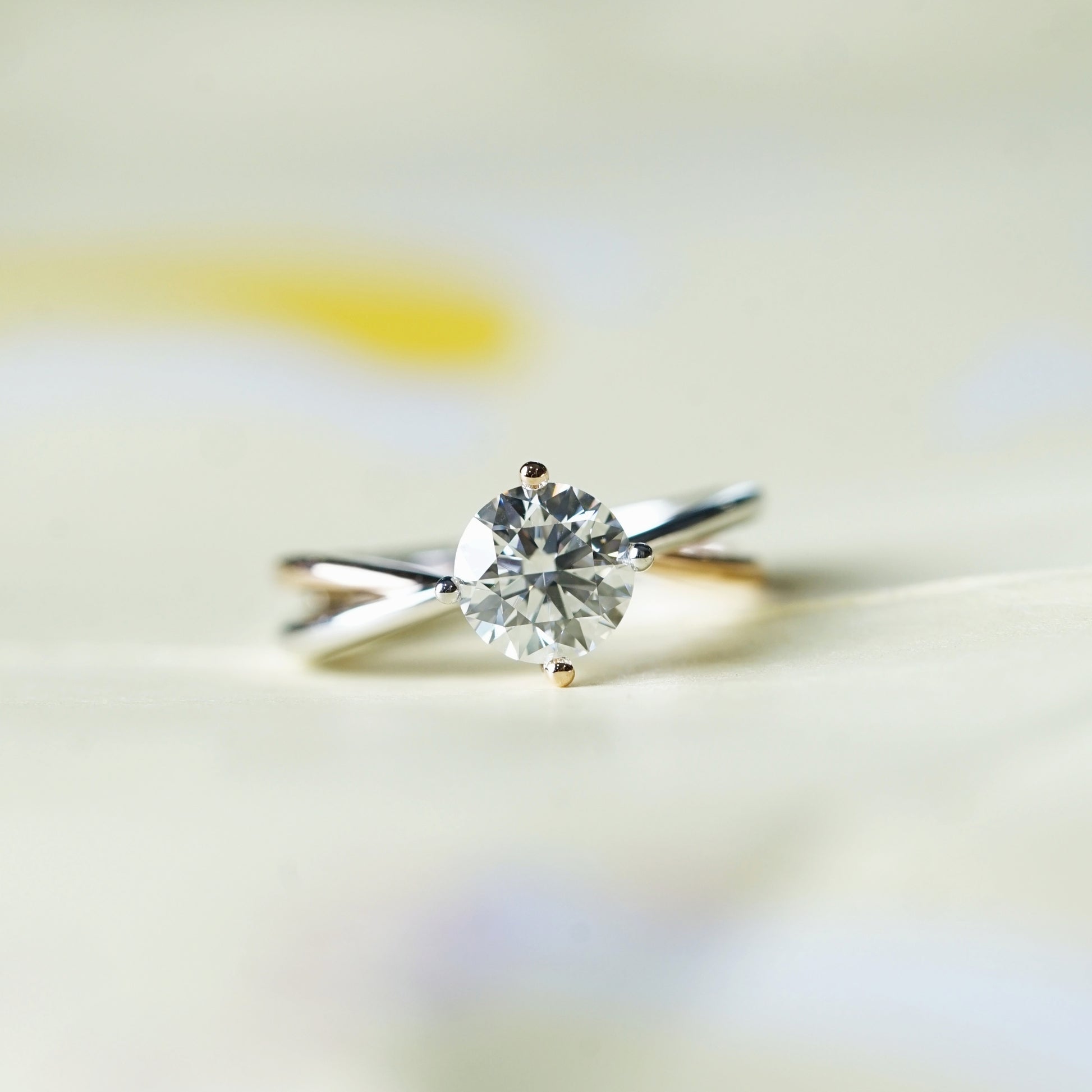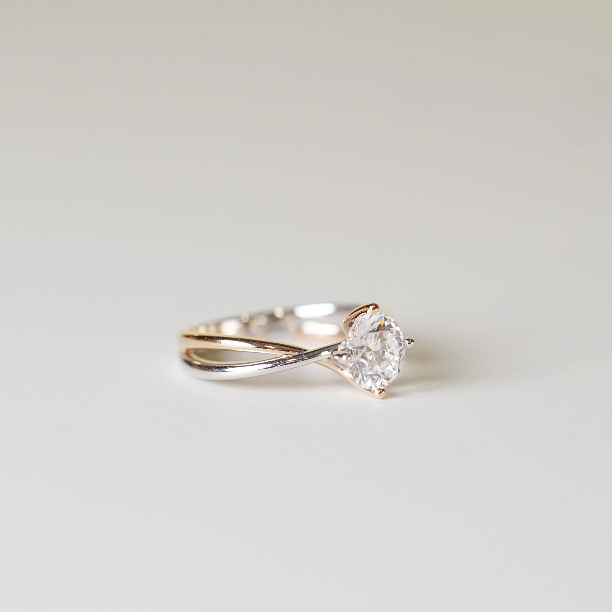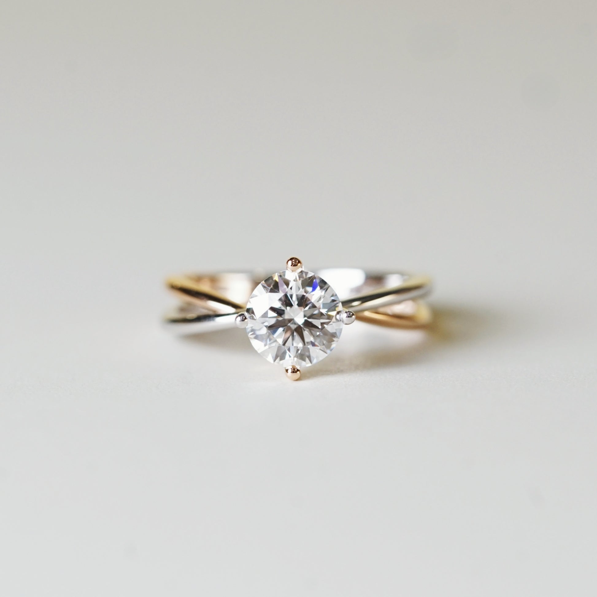 EVELYN 培育鑽石單鑽戒指托|雙色交錯戒圈(18K 金/鉑金)– TM0037