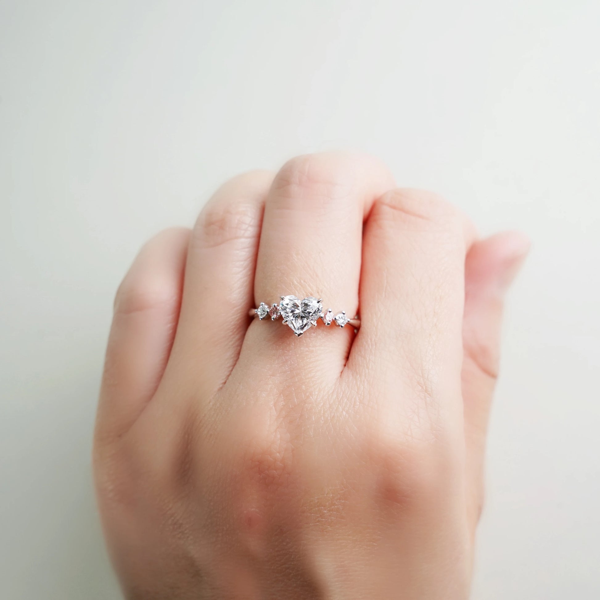 RITA 心形培育鑽石戒指托|兩側鑲鑽戒圈(18K 金/鉑金)– TM0104HT